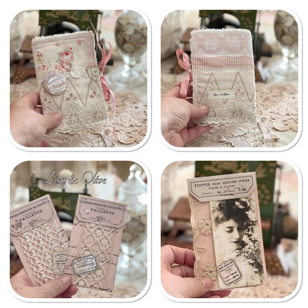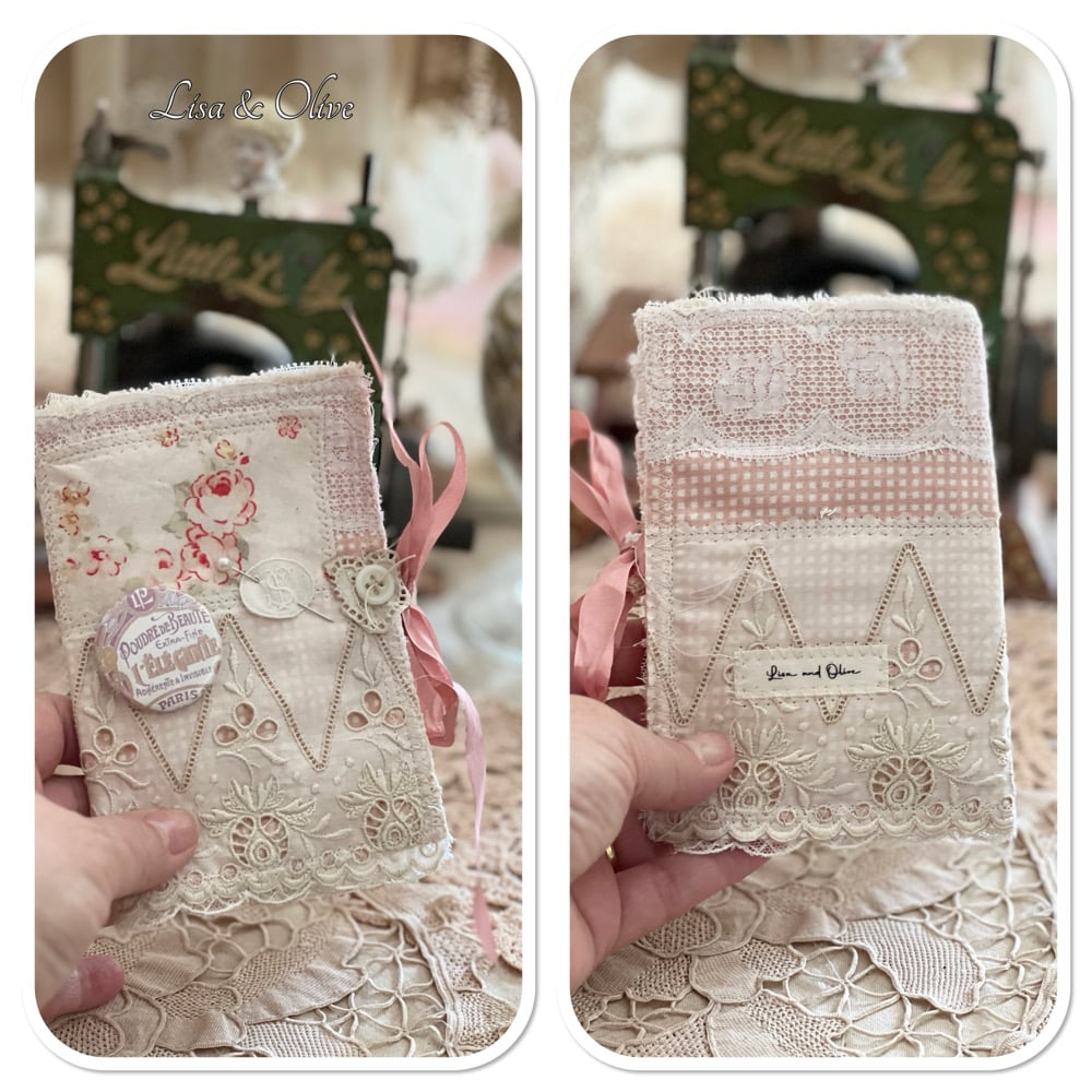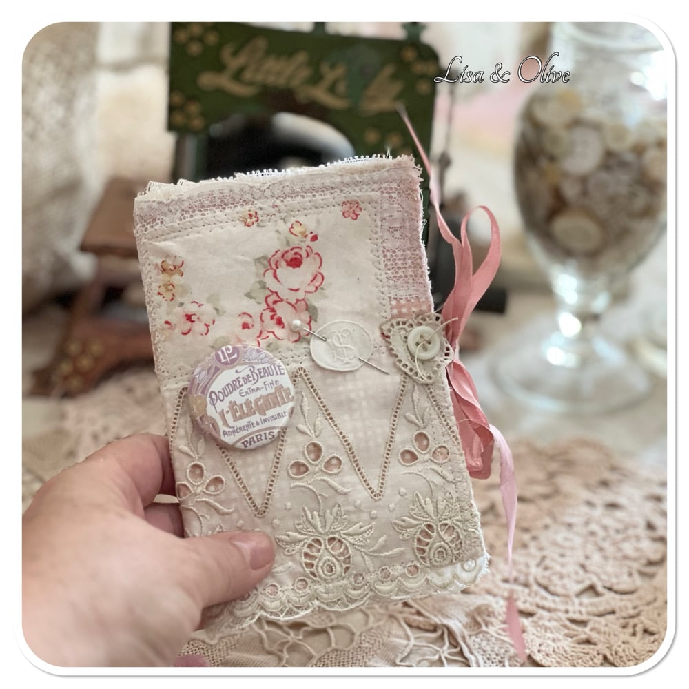 Reserved Listing for Silvia Pink French shabby Chic Sewing/Needle book lace samples