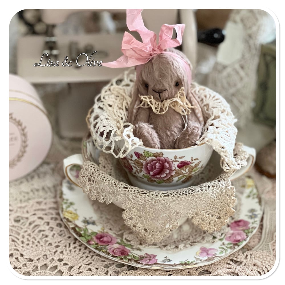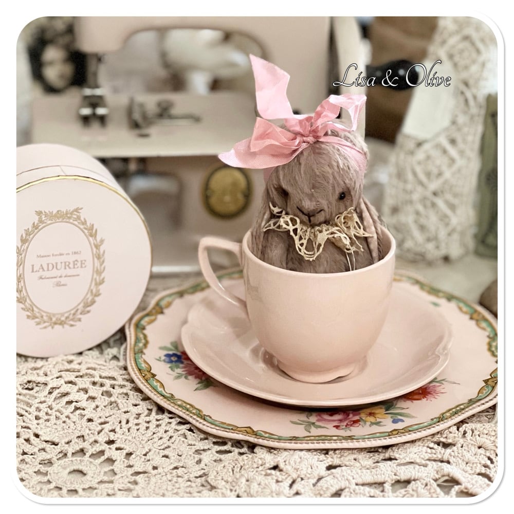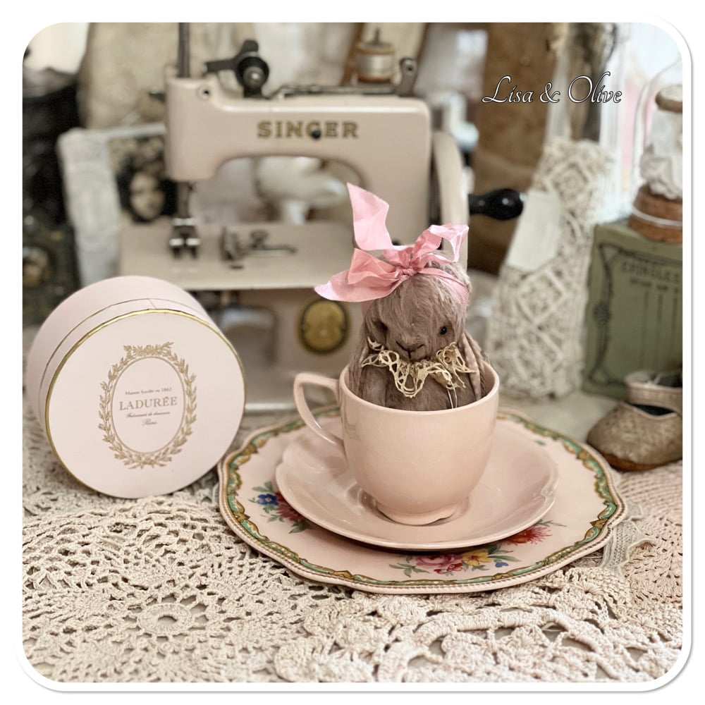 Handmade Victorian Plum Colour Teacup Bunny