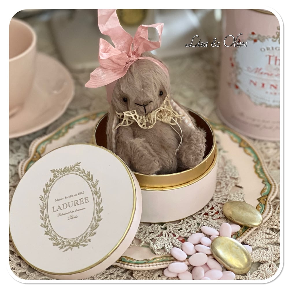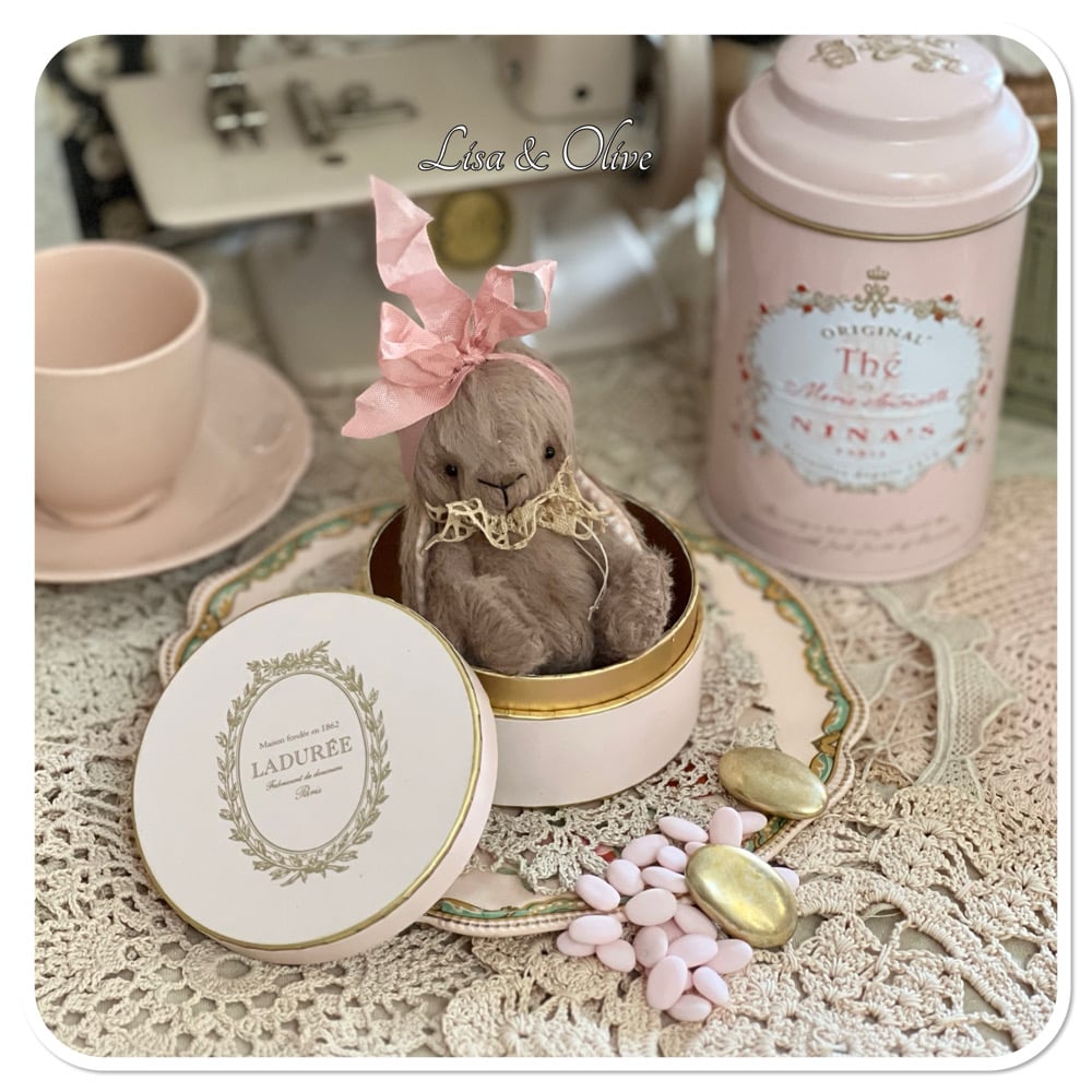 she doesn't come with a teacup or the little Laduree box, hopefully you will find the perfect little teacup or box for her to sit in.