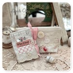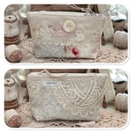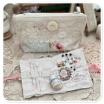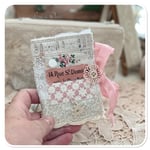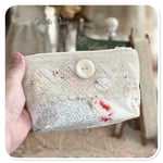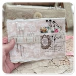 This beautiful sewing purse has been handmade by me, I have used some hand dyed calico and some pretty floral fabric in shade of blue and pink. I have added some really beautiful vintage French lace which I found at a flea market in Paris last December. I have added a large mother of pearl button on the front along with a motive.