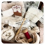 also included are a couple of vintage French cotton reels for lace making