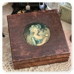 This beautiful French box with a round image on the front . I have added some of my gorgeous vintage French lace also found at the flea market along with the vintage French postcard