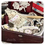 Vintage French sewing box full of French lace buttons and cotton