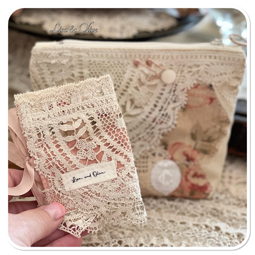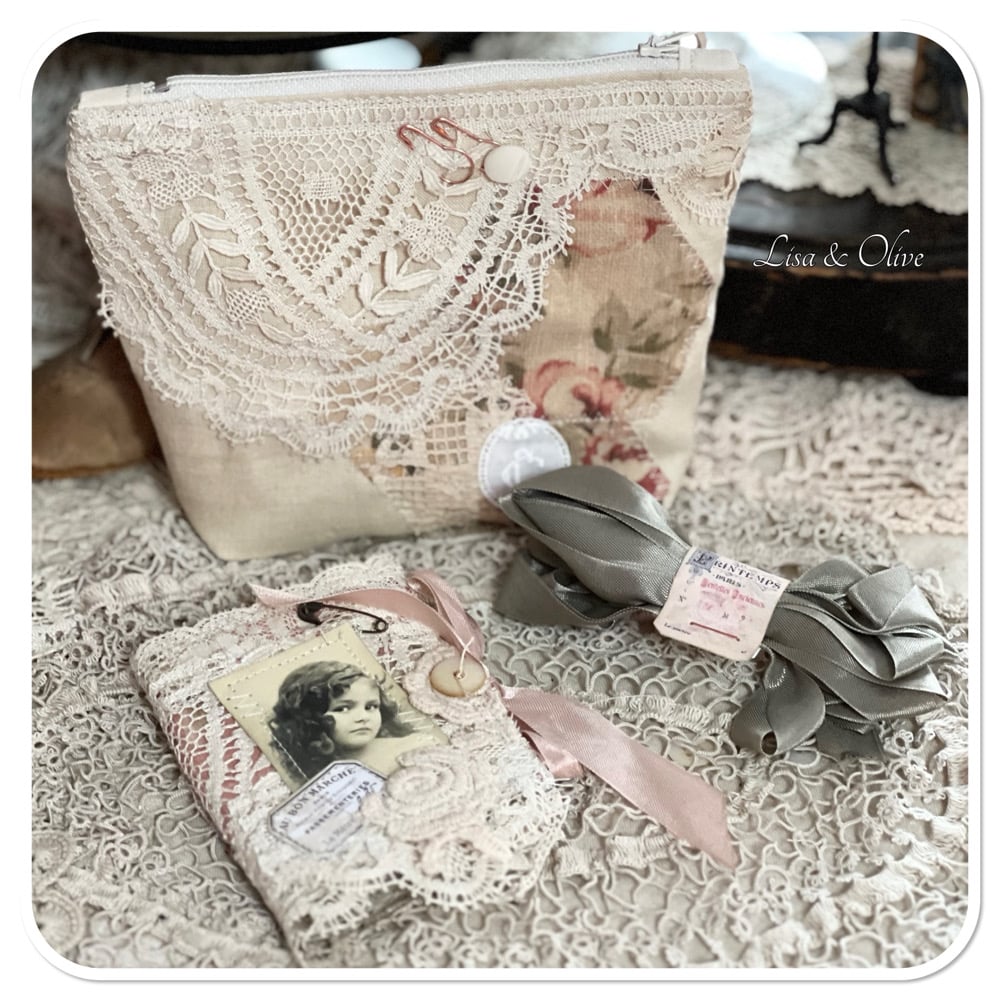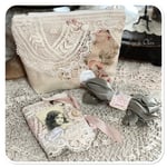 This beautiful sewing purse has been handmade by me, I have used vintage French linen fabric which I found at the Paris flea market last year for the base of the purse. I have stitched different size hexagons to the front of the sewing purse along with a monogram. I have trimmed the purse with vintage French lace also found at the flea market last year.