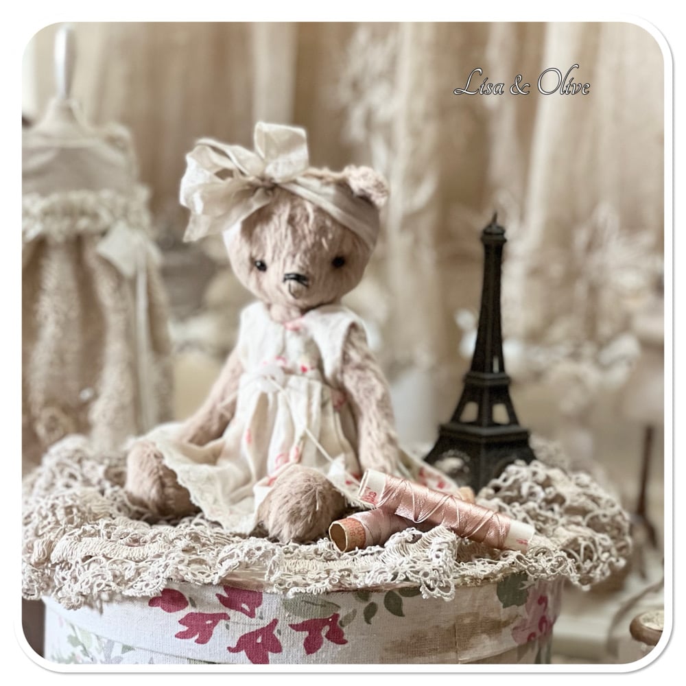 The only item being sold is the handmade teddy bear in a floral dress , all other items are for display only.