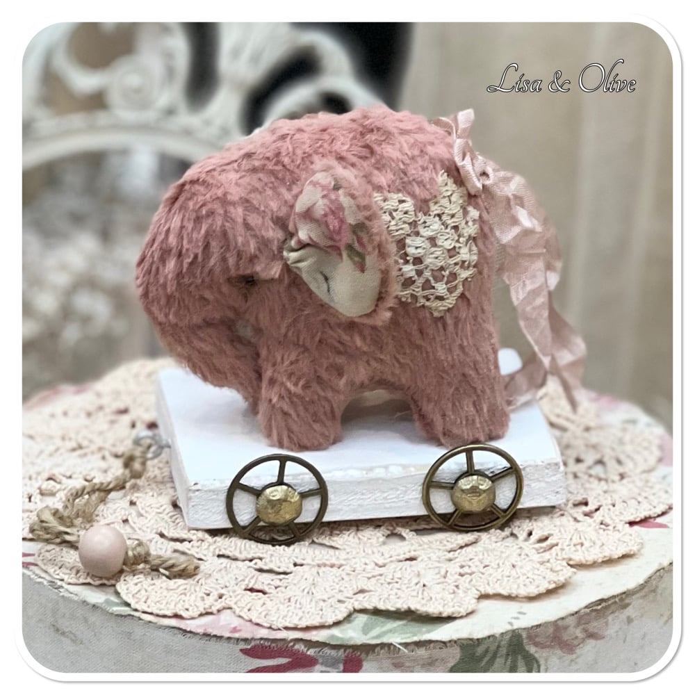 this listing is for a sweet little standing elephant on a little wooden cart.