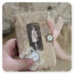 I have used some vintage fabric lace and edged it with vintage French lace. The base and lining of the bag I have used hand dyed calico.