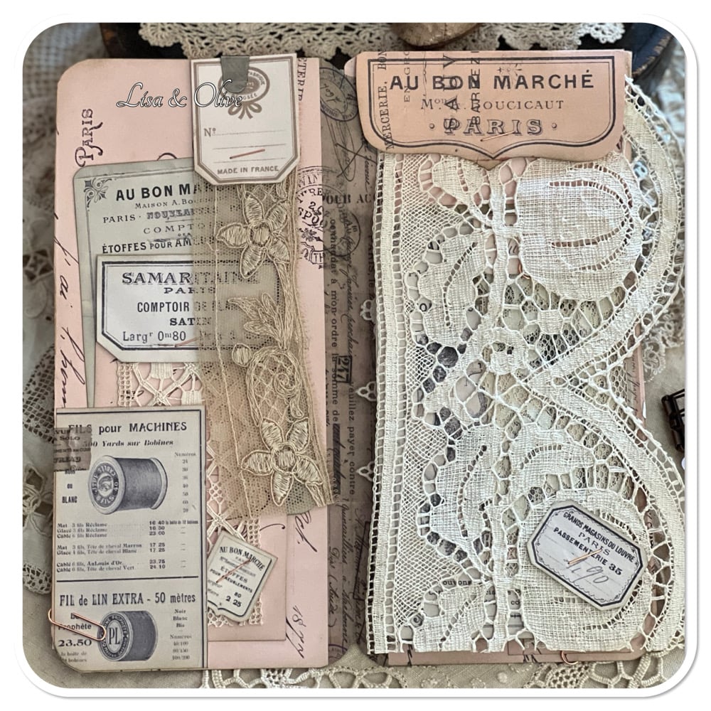 Todays listing is a vintage style French altered samples folder when it opens there are vintage French lace samples