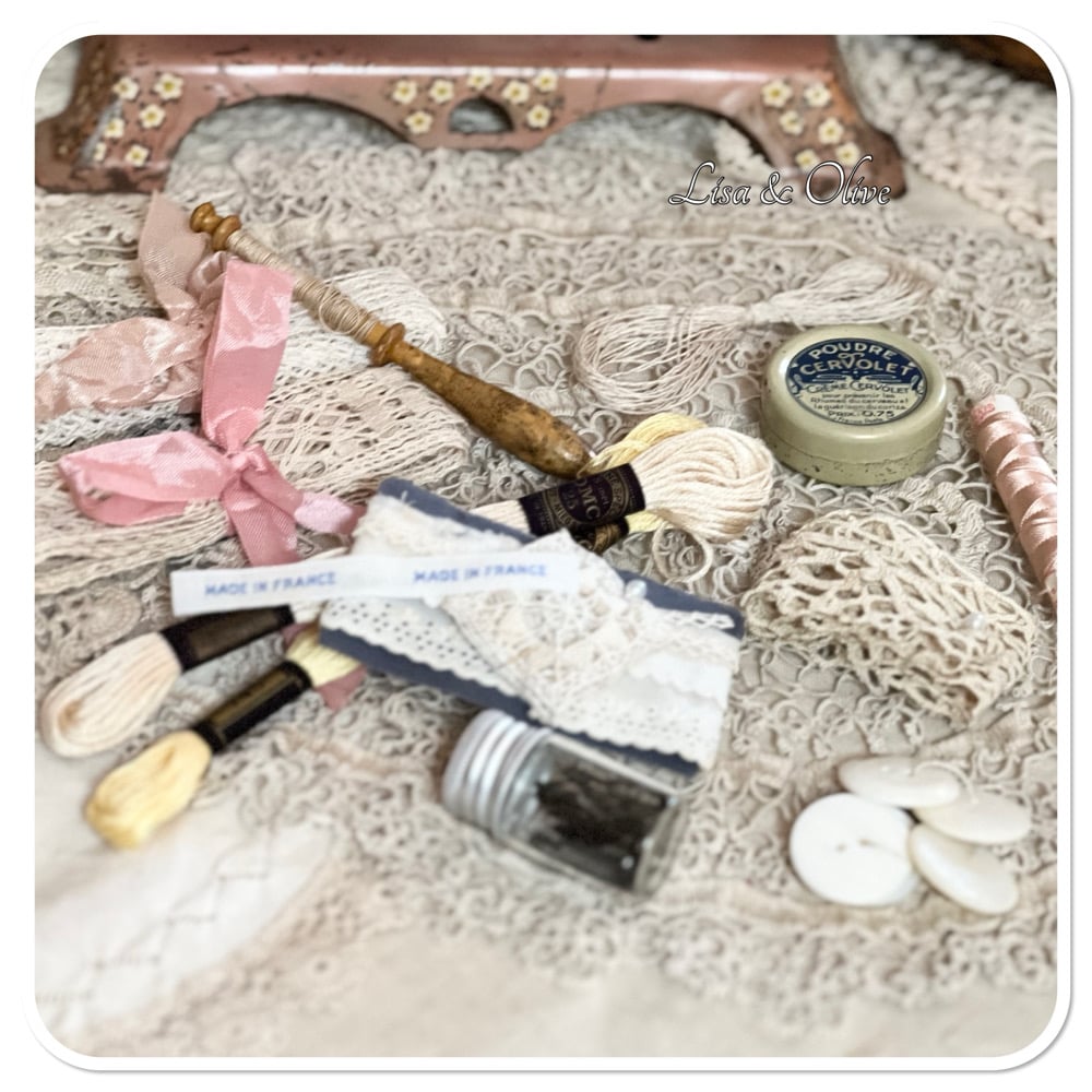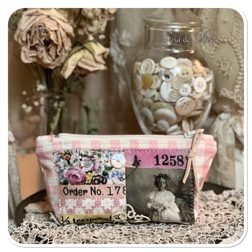 tiny slow stitch sewing pouch full of haberdashy supplies